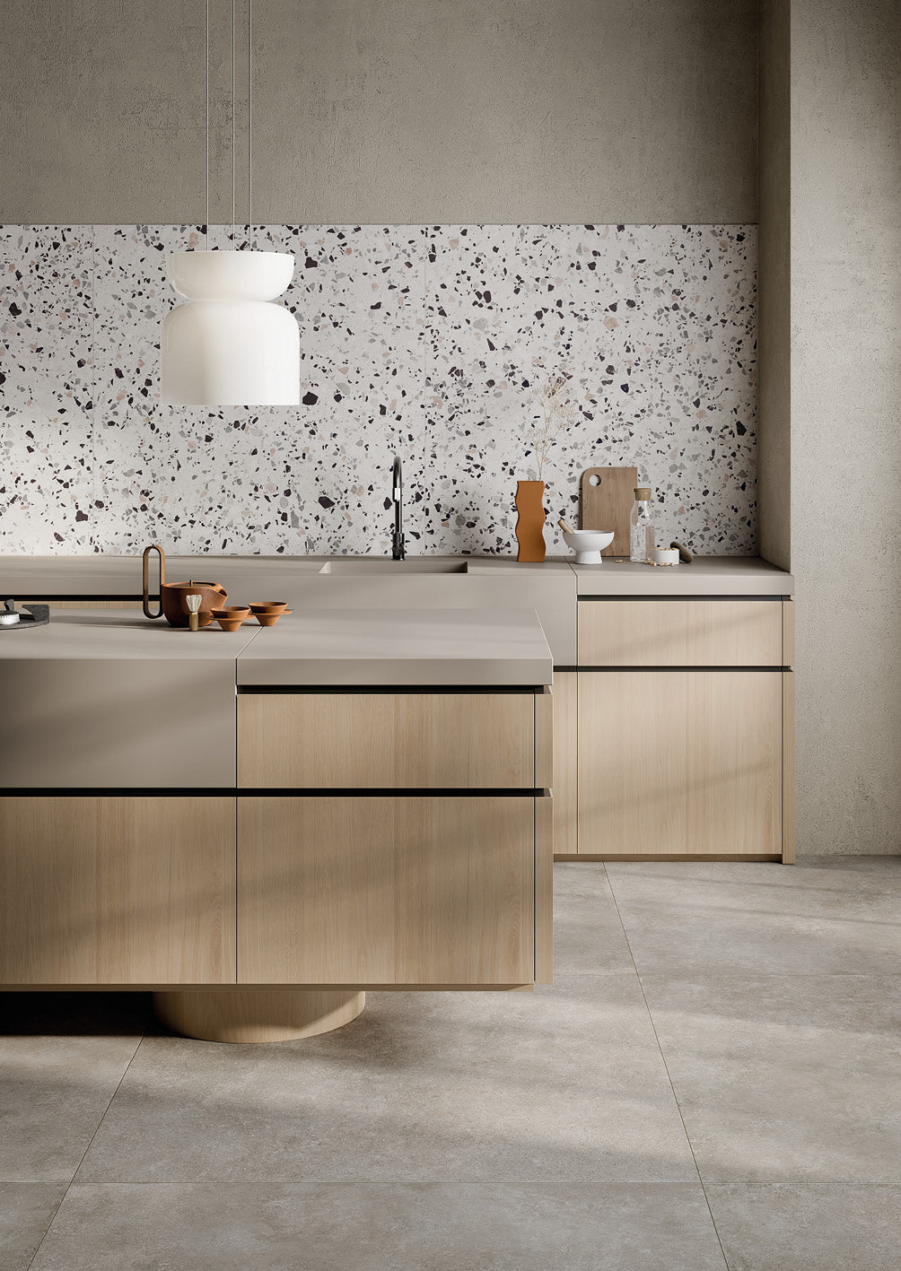 Die Pangea Cenere Fliese ist Teil einer Kollektion mit fünf Farben und modularen Formaten, die sich perfekt mit anderen Materialien wie Holz, Marmor oder farbigen Oberflächen kombinieren lässt – für moderne, innovative Wohnkonzepte mit zeitloser Wirkung.